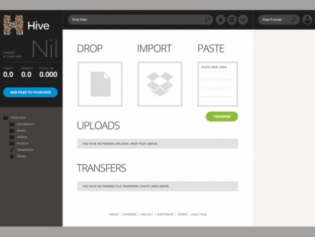 O Hive é um serviço de armazenamento em nuvem grátis e ilimitado disponível apenas como web app.