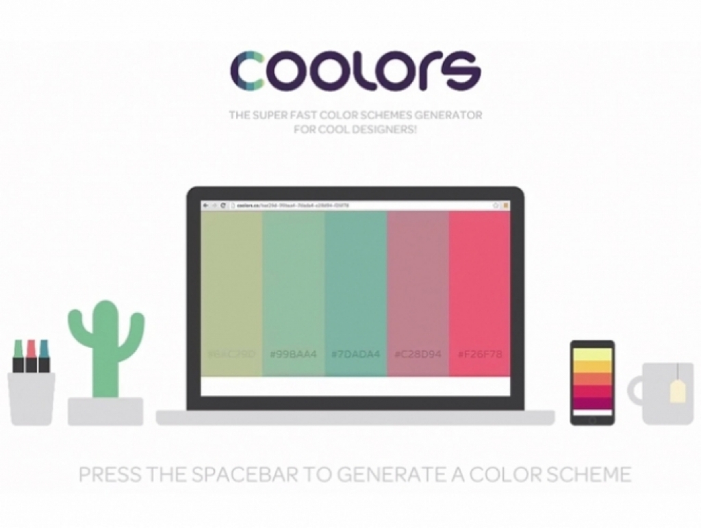O Coolors é um web app capaz de gerar rapidamente várias paletas de cinco cores.